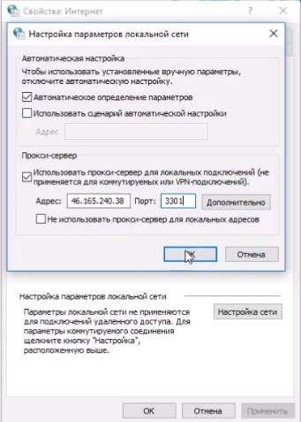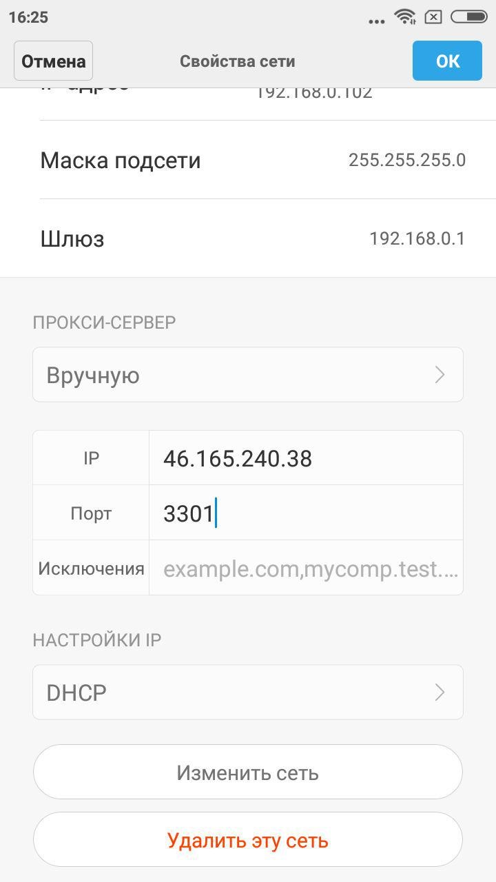 И пропишите полученные настройки в HTTP Proxy (IP и Port), а затем нажмите ОК.