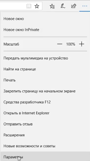 Если вы пользуетесь браузером Edge, то для настройки перейдите в параметры браузера через меню в правом верхнем углу.
