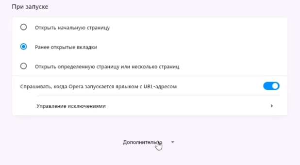 Во вкладке настроек пролистать ниже и зайти в дополнительные настройки браузера.