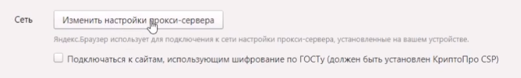 Далее найти подраздел «Сеть» и нажать «Изменить настройки прокси-сервера».